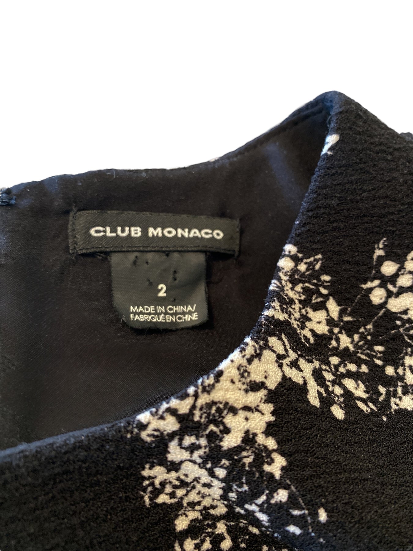 Club Monaco Women's Abstract Floral Printed Crepe Shift Dress Black Size 2