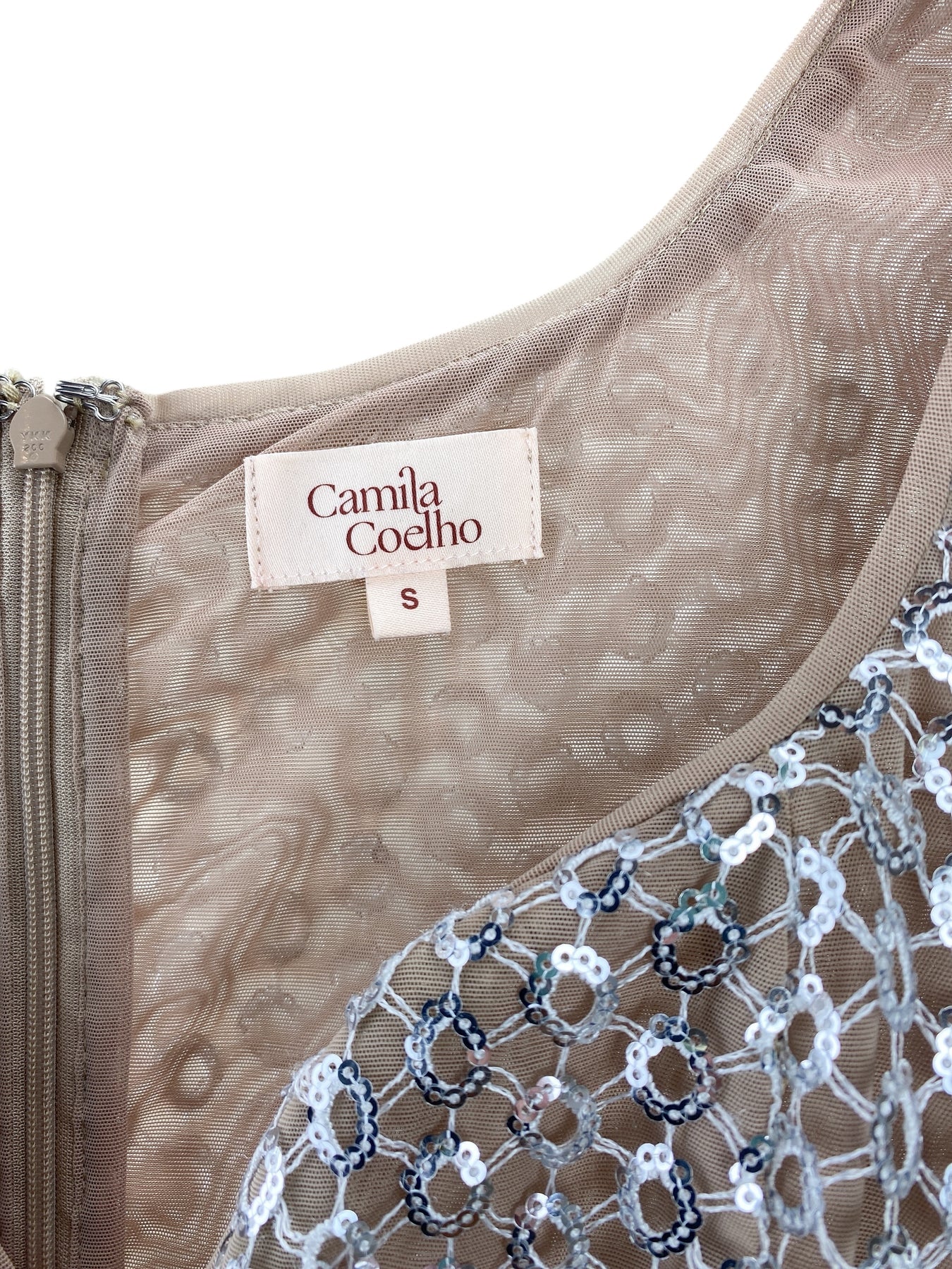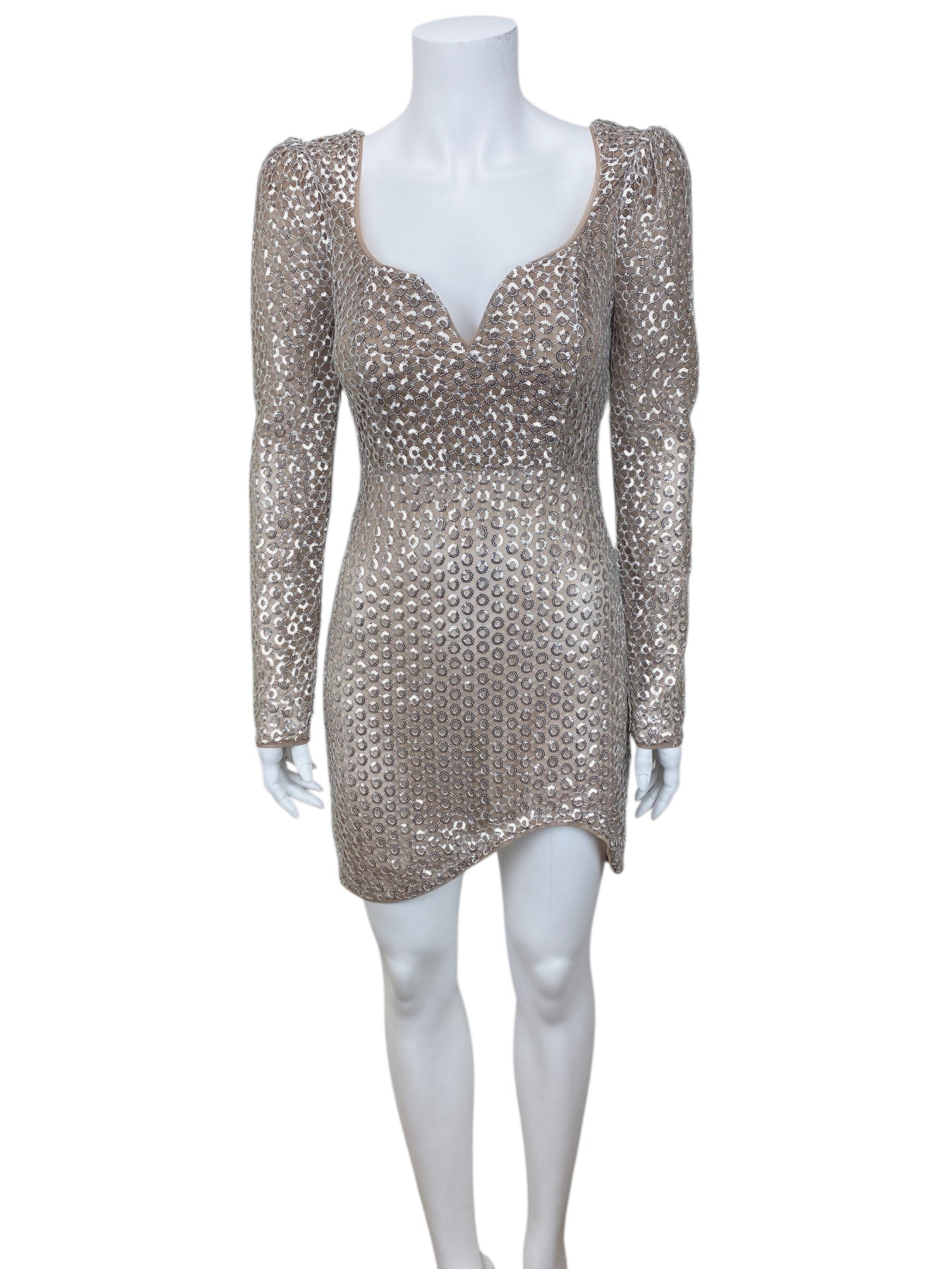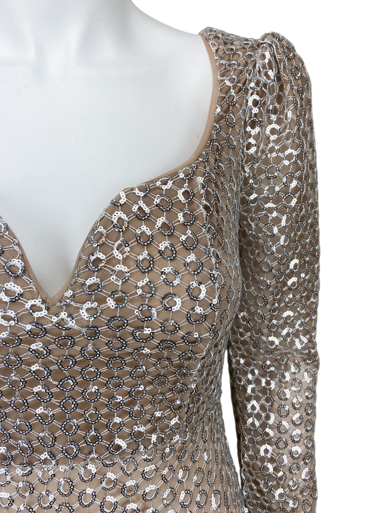 -Camila Coelho Women's Thalia Sequin Mini Dress Silver Nude Size S