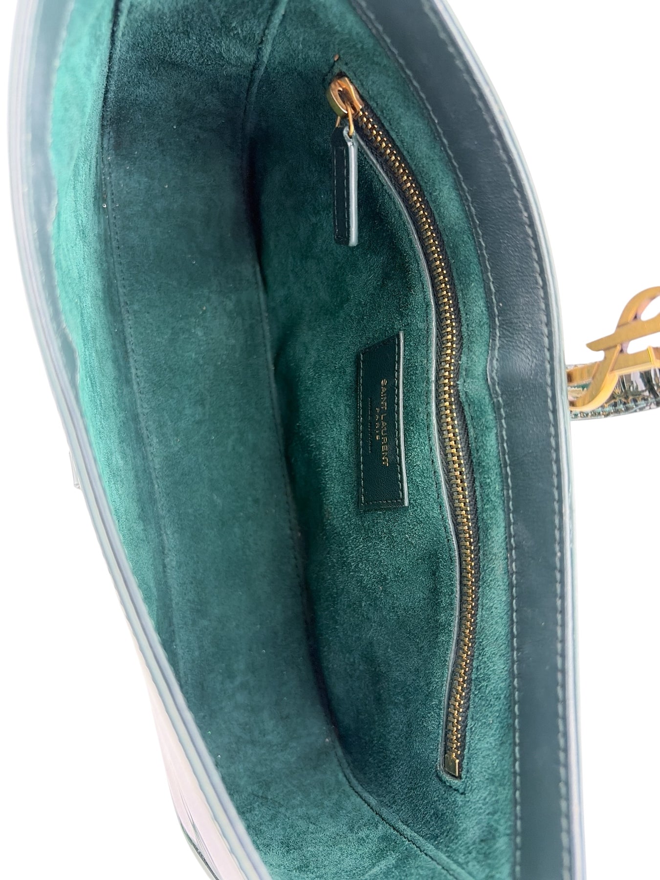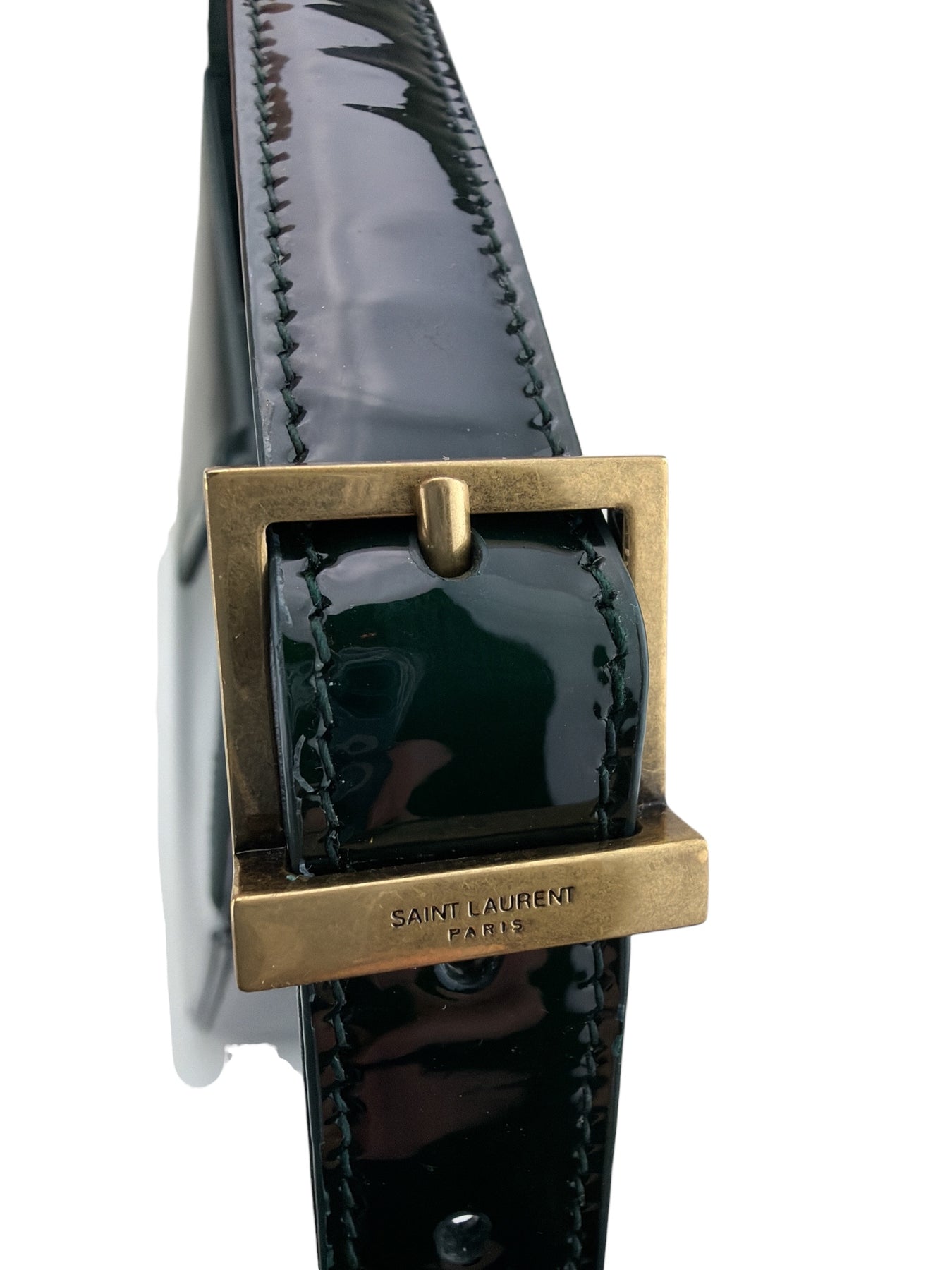 Yves Saint Laurent Women's Le 5 À 7 Patent Leather Shoulder Handbag Dark Green