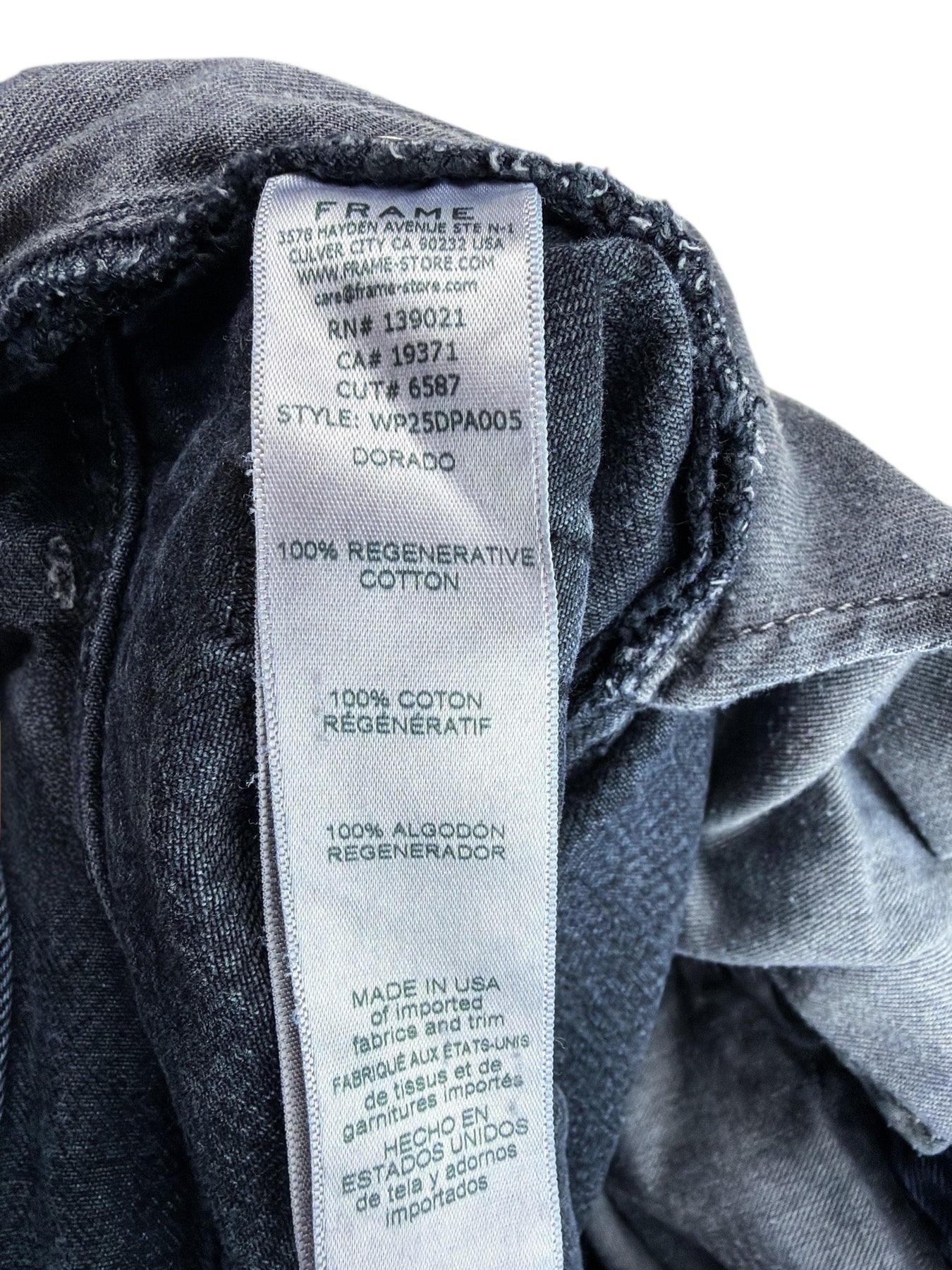 -Soft, rigid 100% regenerative cotton denim in a very dark indigo wash called Dorado (color is even darker than in the photos)