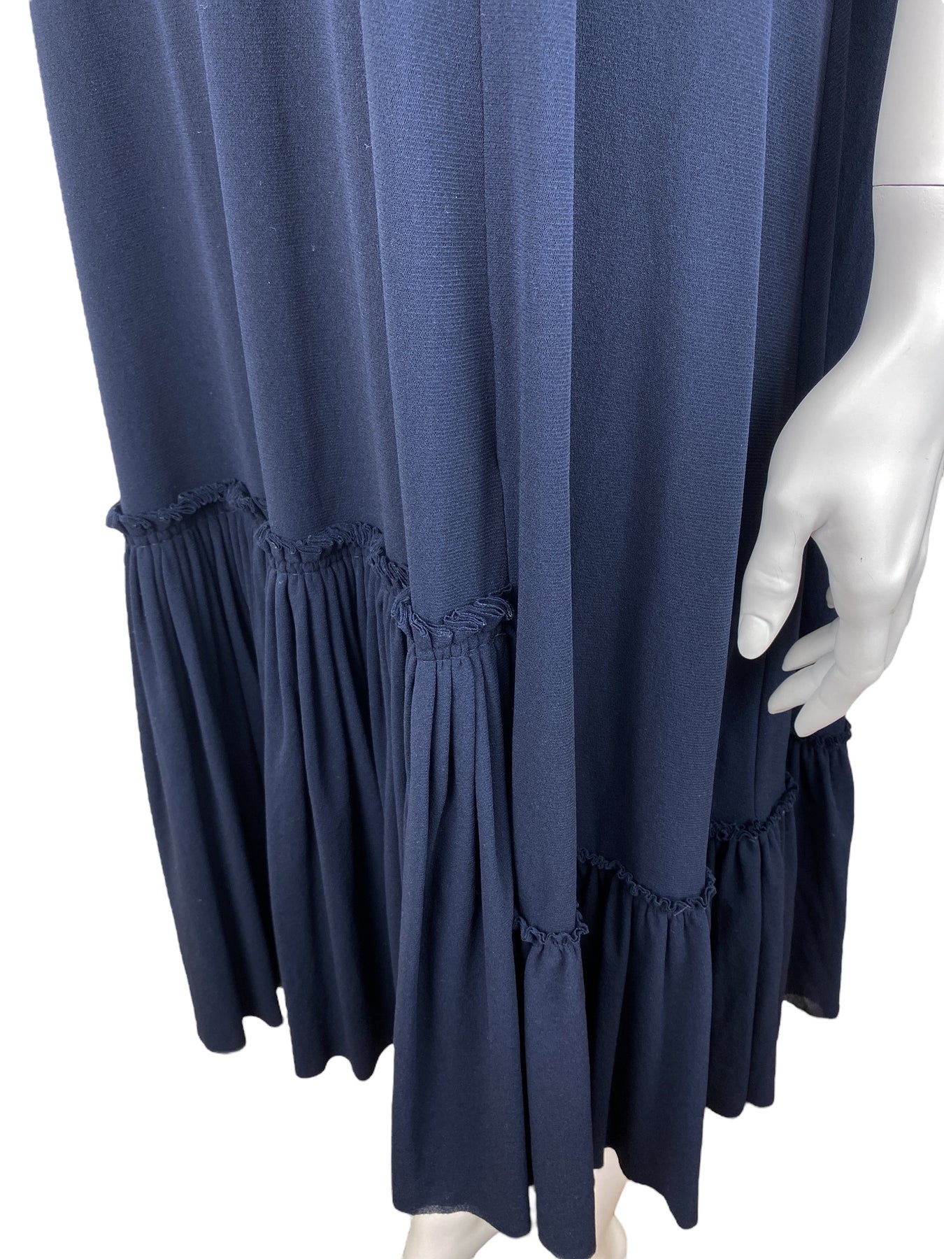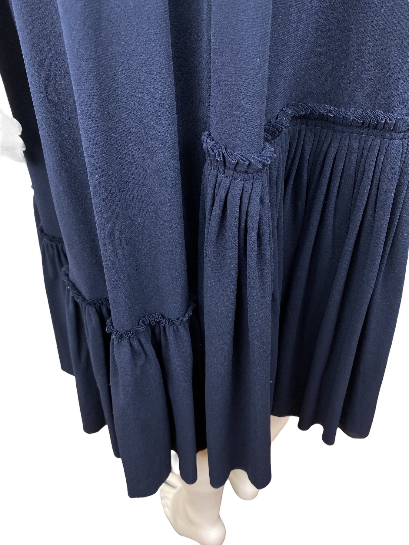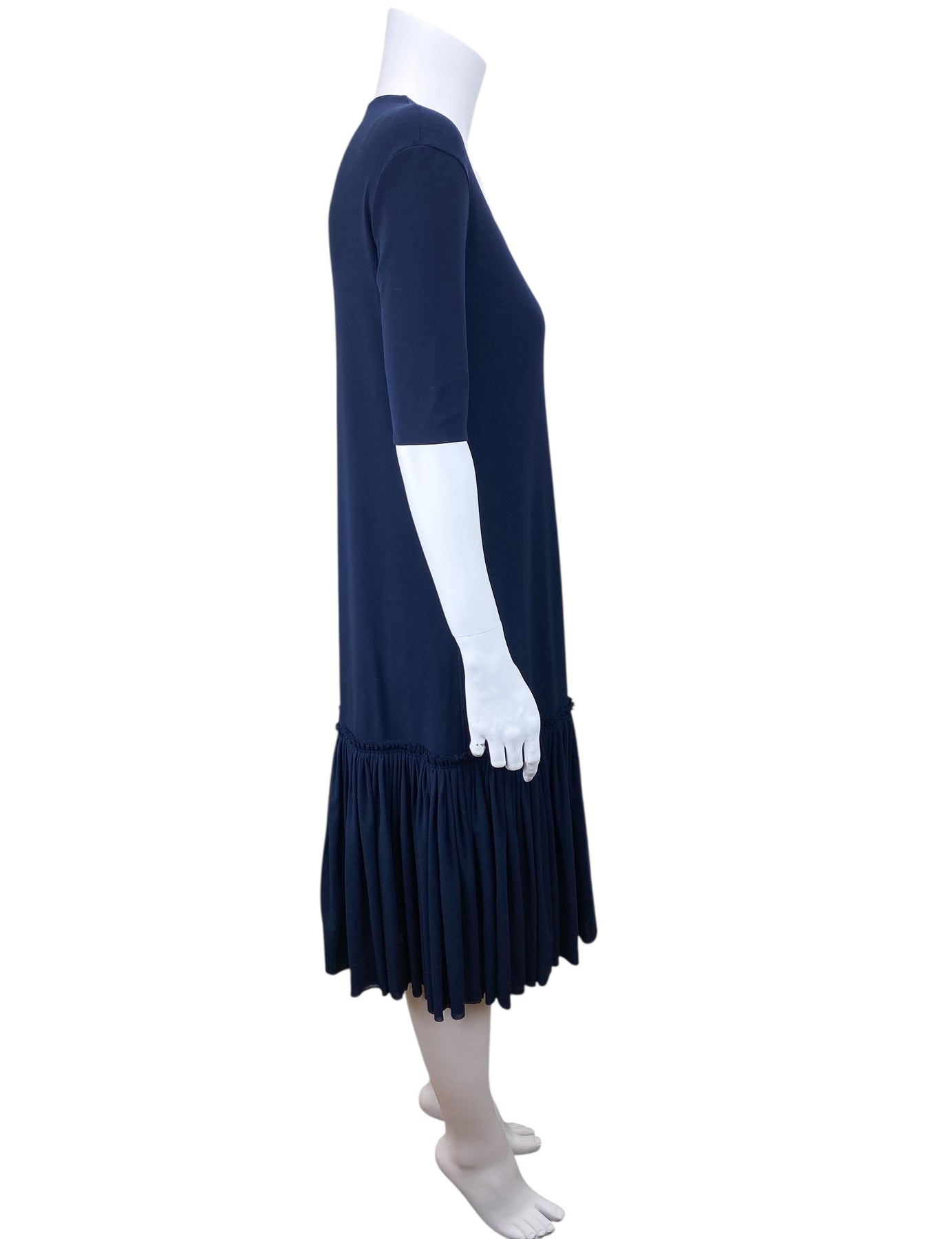 Jil Sander Women's Knit Ruffle Flounce Midi Dress Navy Size S