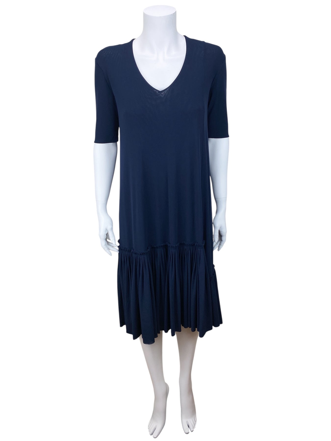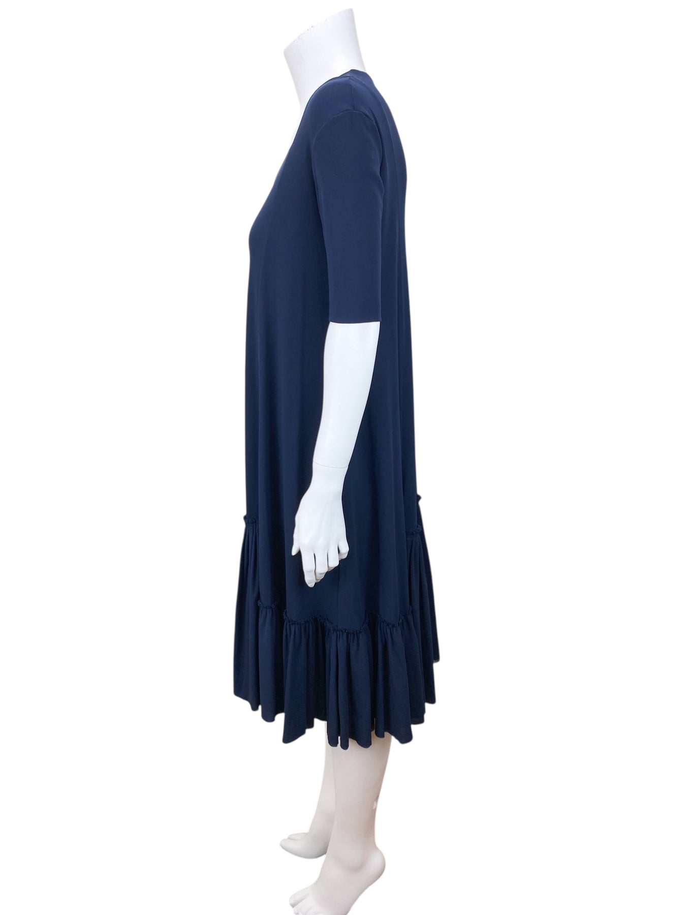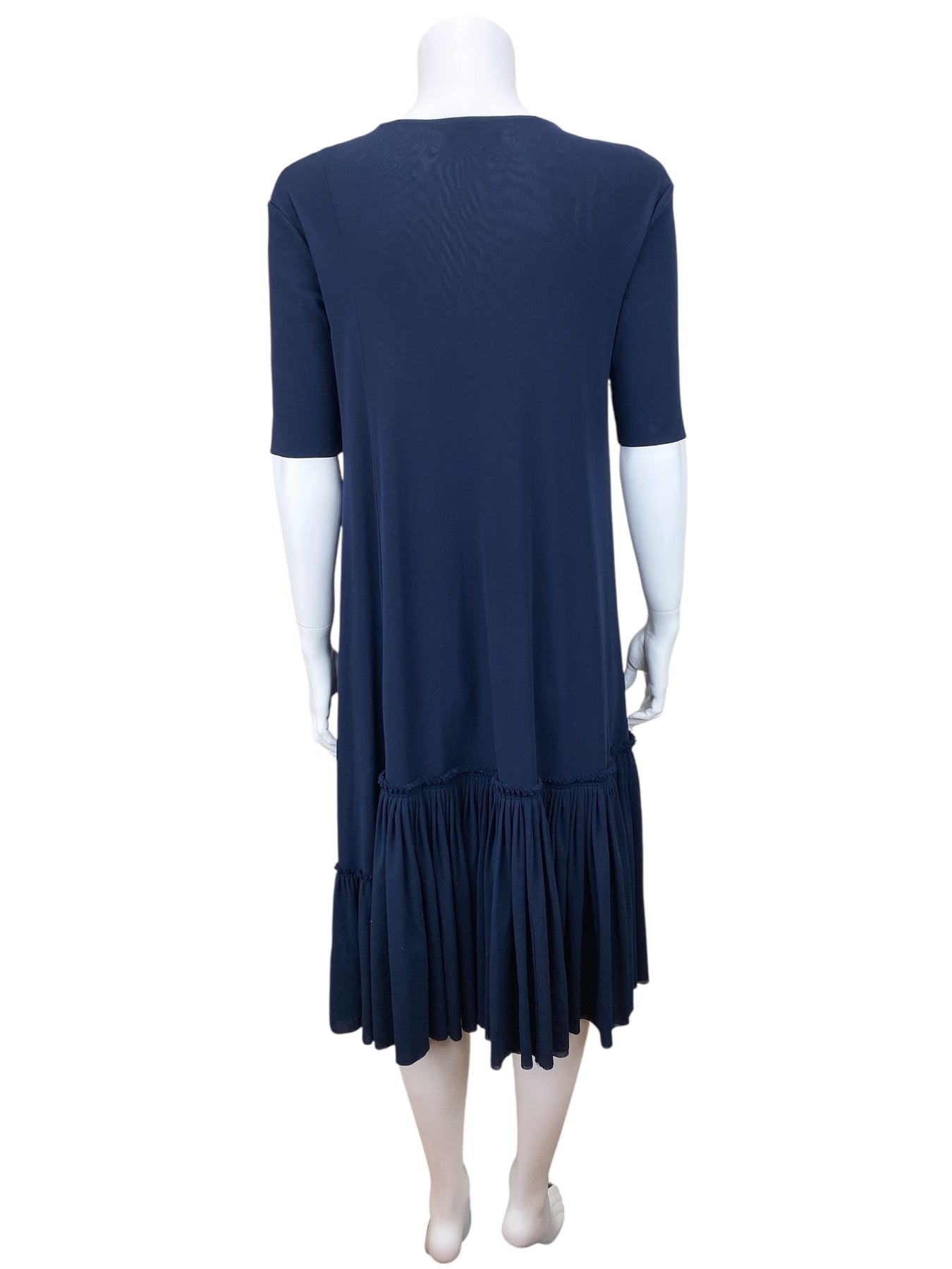 Jil Sander Women's Knit Ruffle Flounce Midi Dress Navy Size S