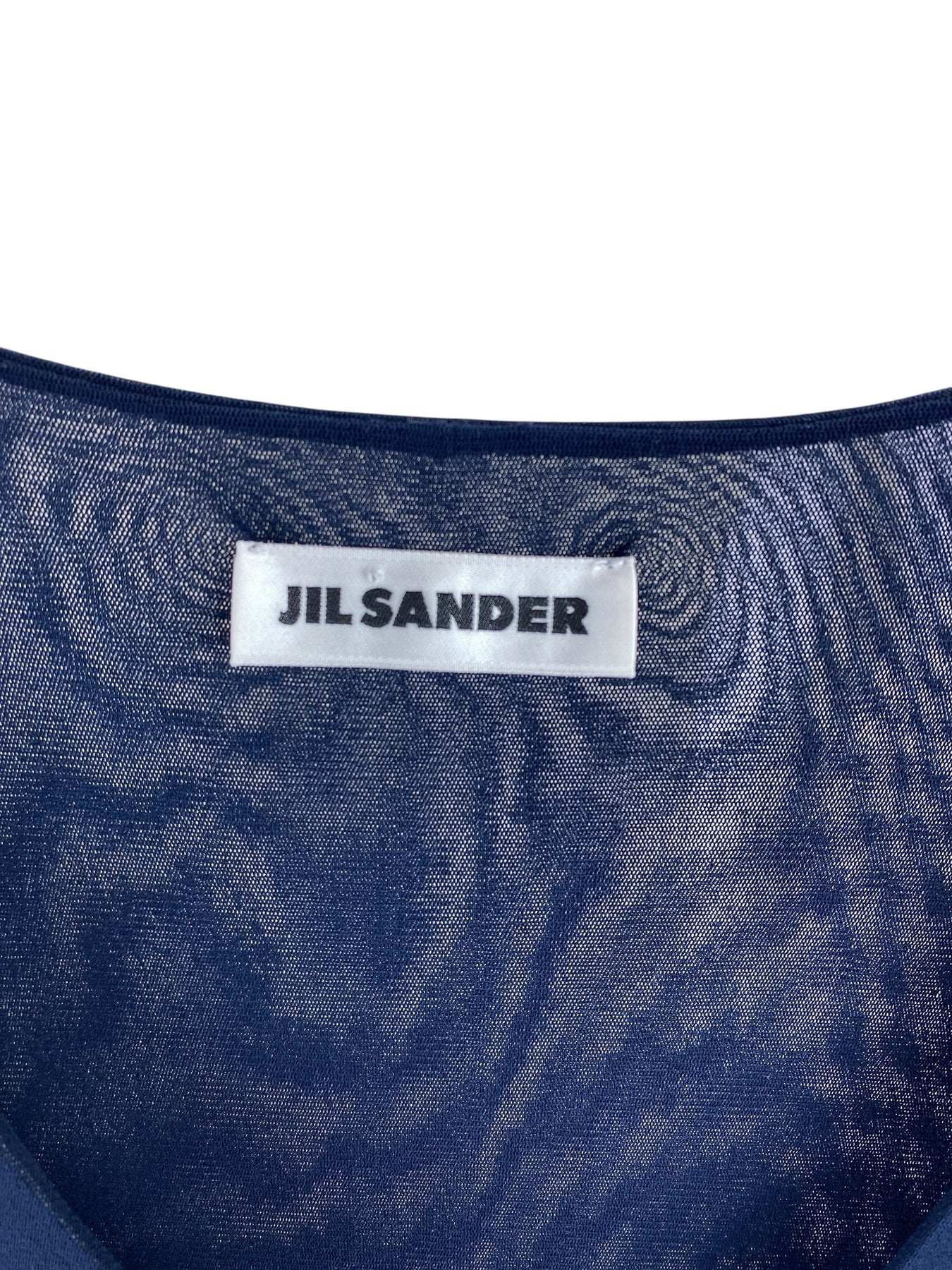 -Jil Sander Women's Knit Ruffle Flounce Midi Dress Navy