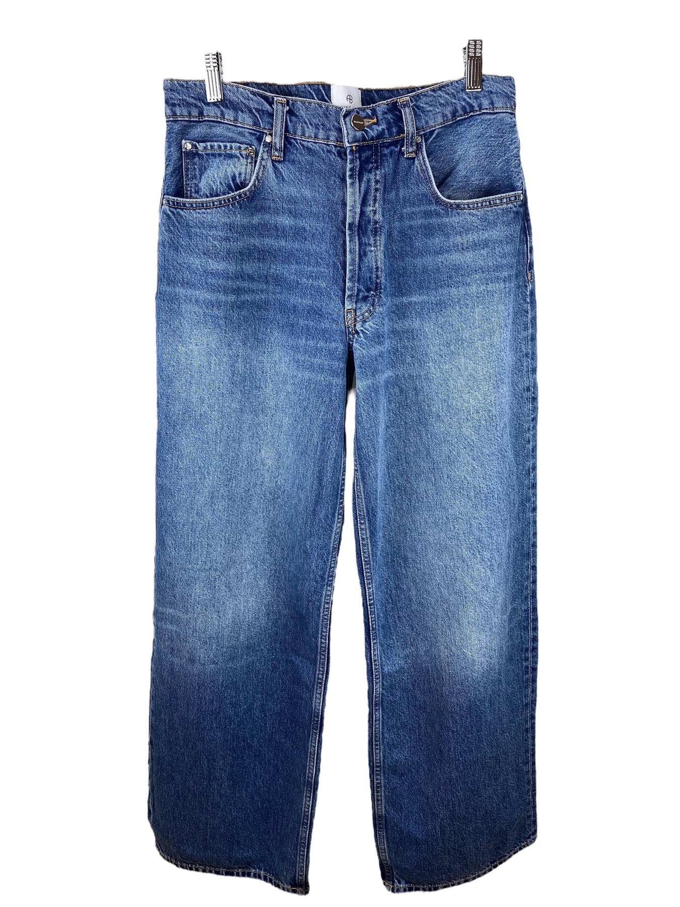 -Anine Bing Women's Manon Relaxed Wide Leg Jean Mazarine Blue Size 28 (6)