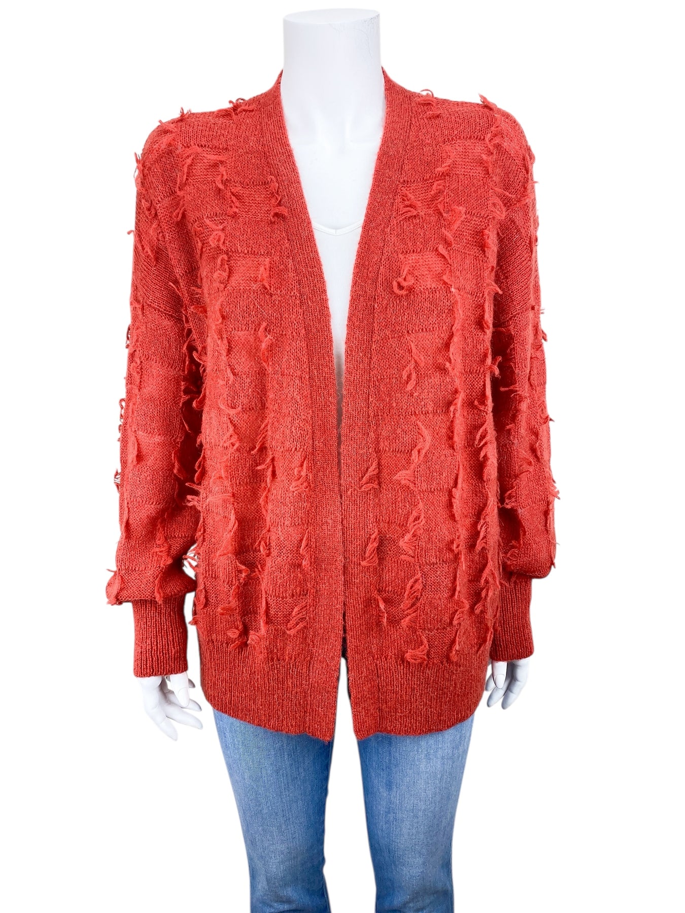 Anthropologie Maeve Women's Fringe Open Cardigan Sweater Terracotta Size S