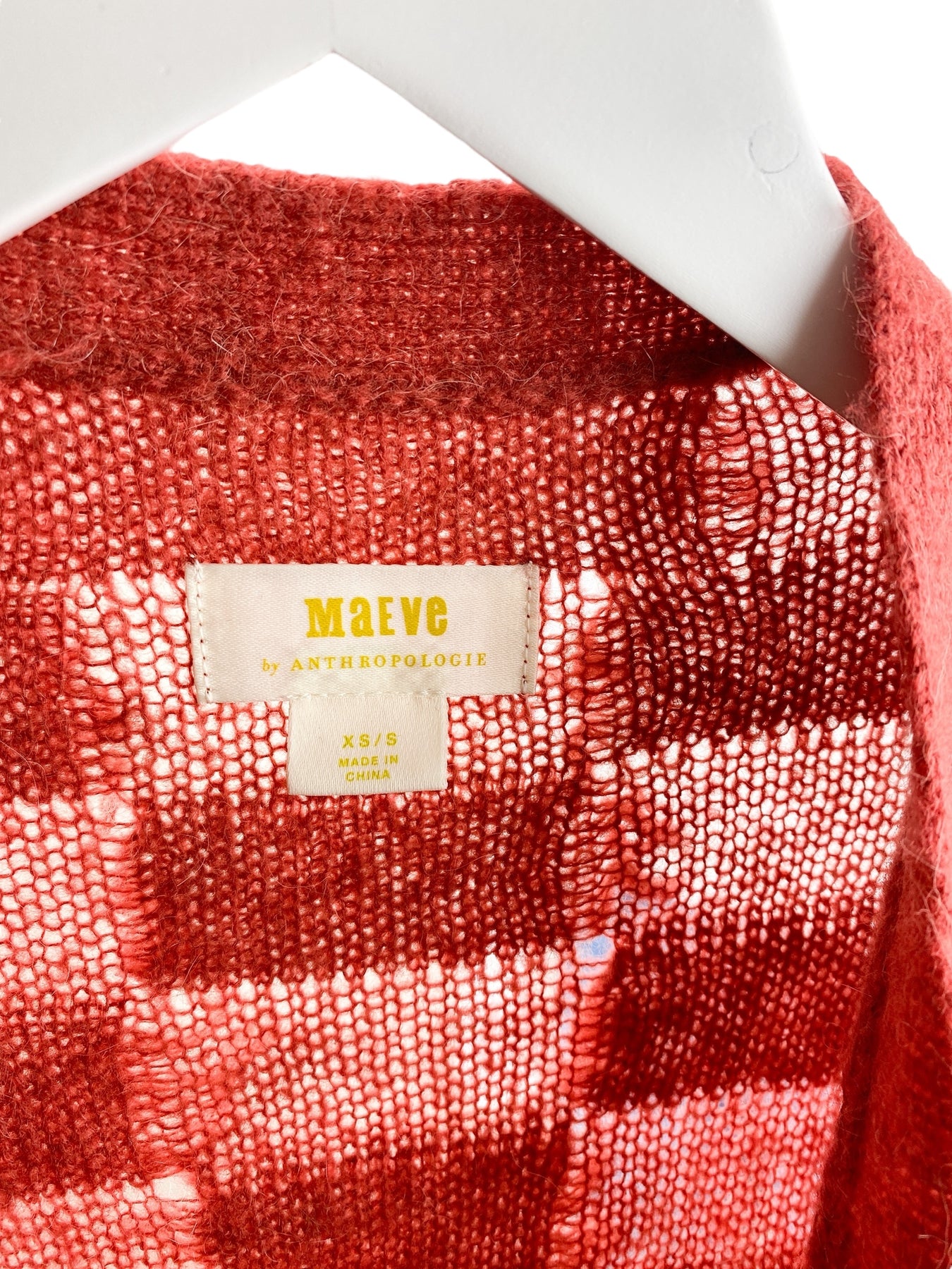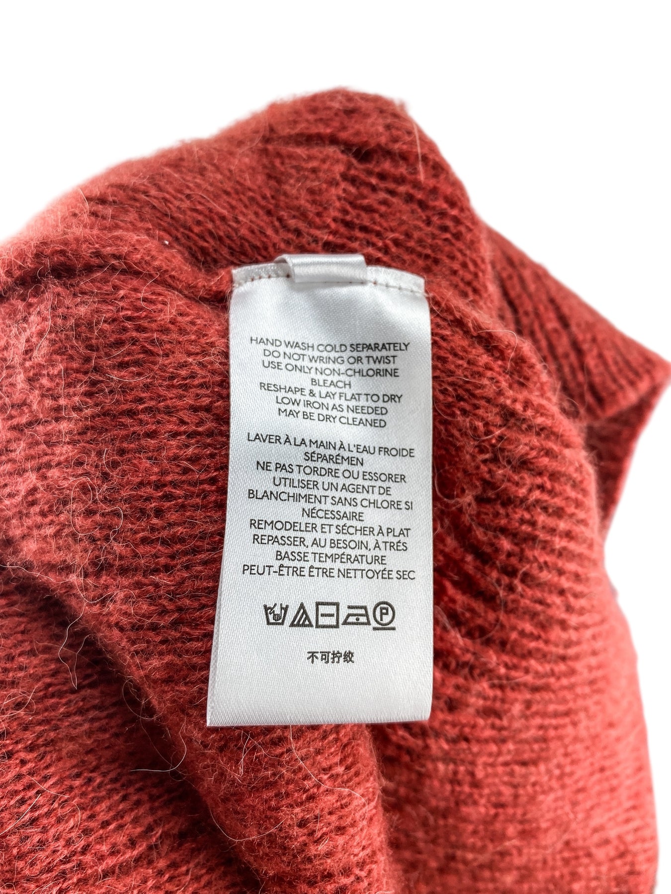 Excellent. No apparent signs of wear. The surface of this sweater is fuzzy due to the alpaca yarn. ***Please note that this garment is labeled size XS/S, but the measurements are very generous, so it is listed as a size S. It might even fit a size M.***