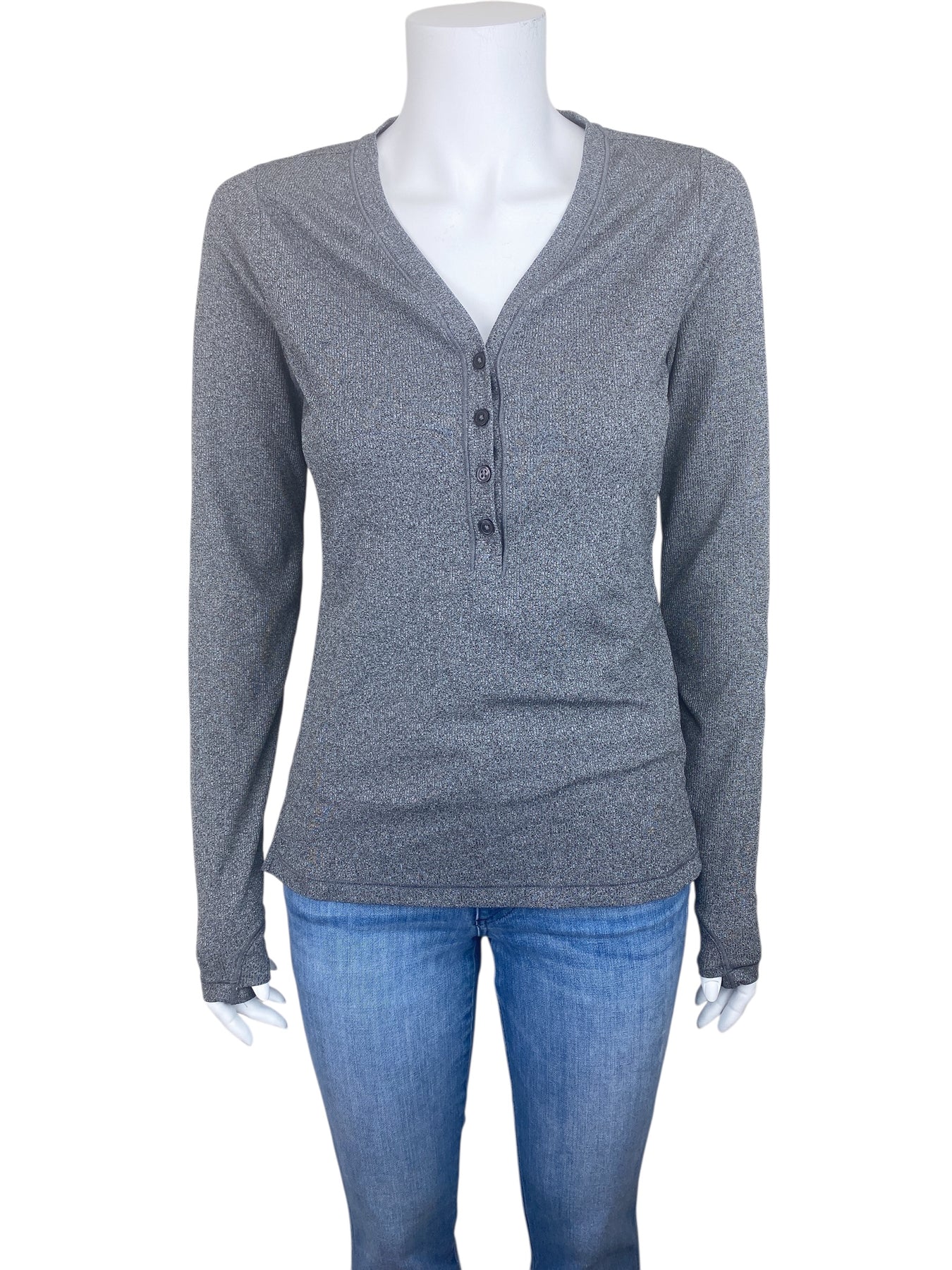 Athleta Women's Uptempo Ribbed Henley Top Heather Grey Size S