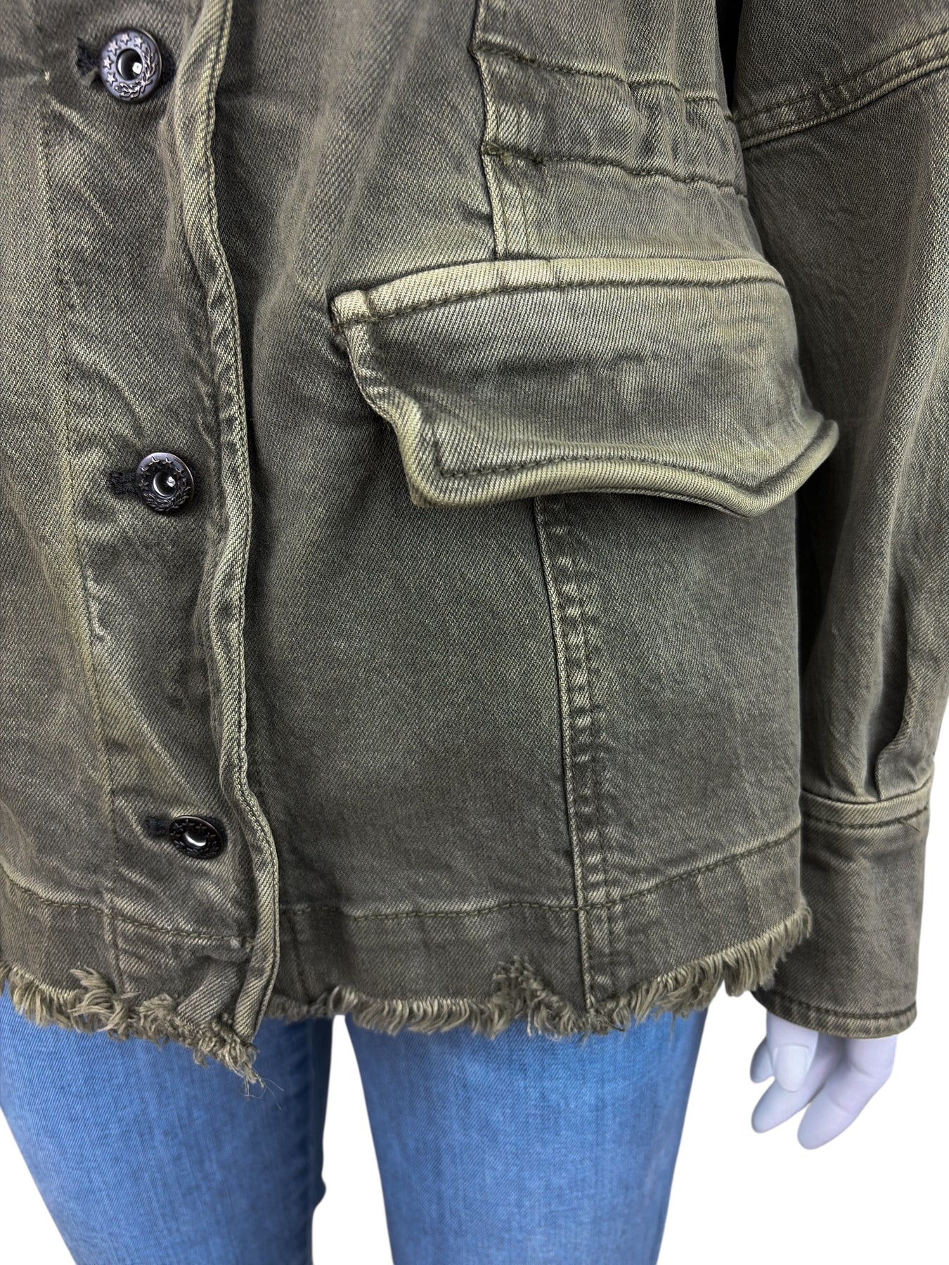 Free People Women's Harley Military Shirt Jacket Washed Olive Green Size S