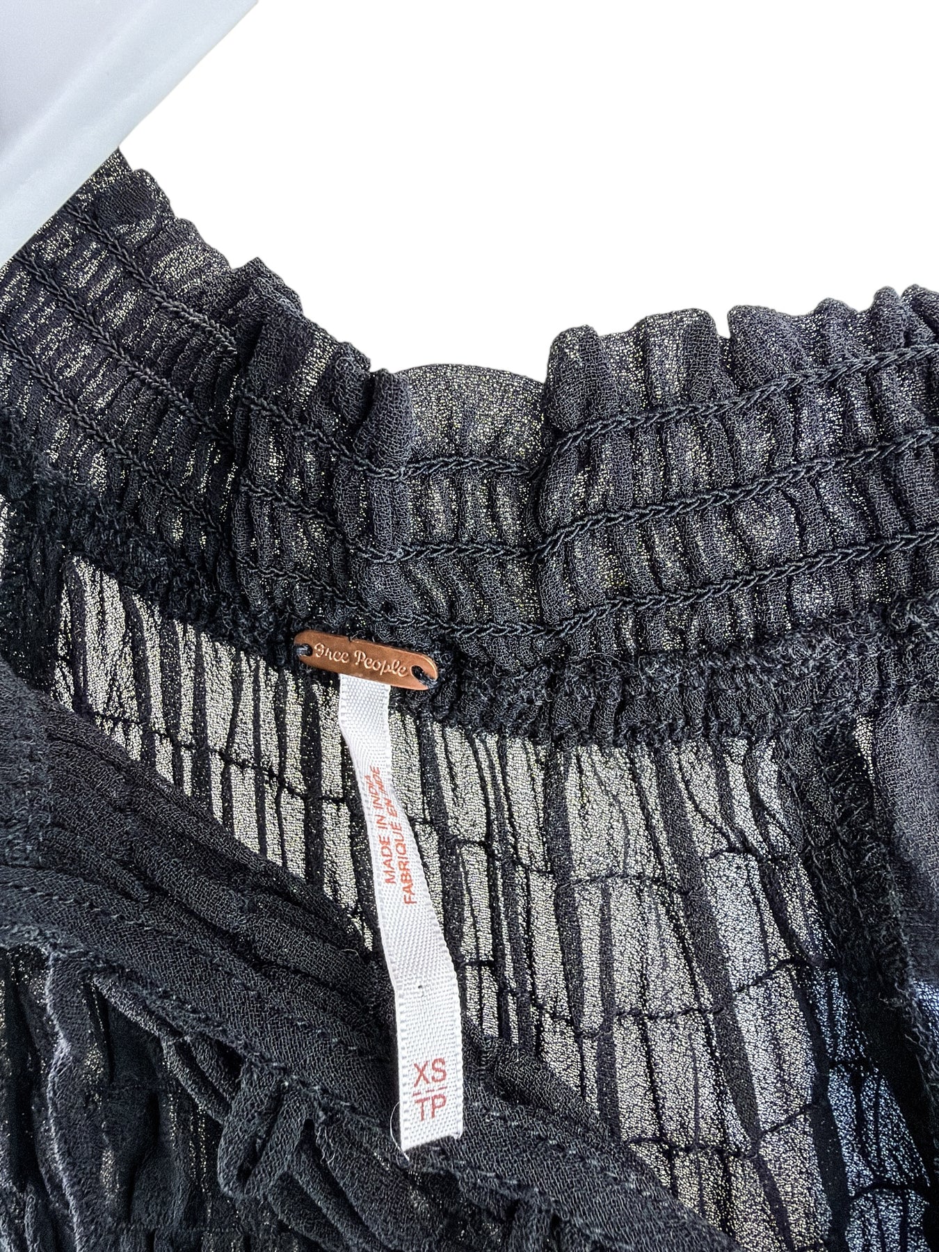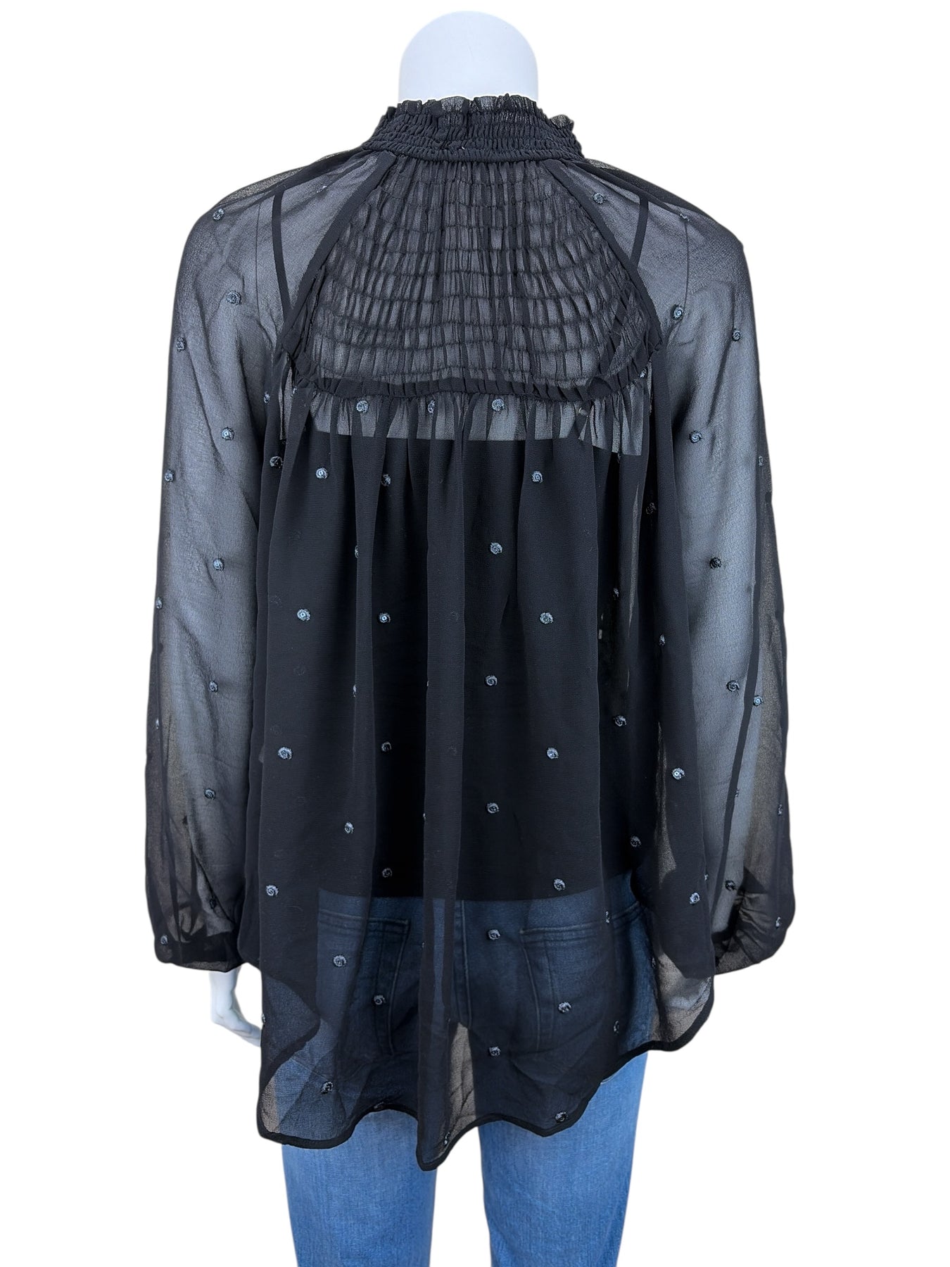 Free People Women's Ready to Run Smocked Dot Boho Blouse Black XS (runs big)