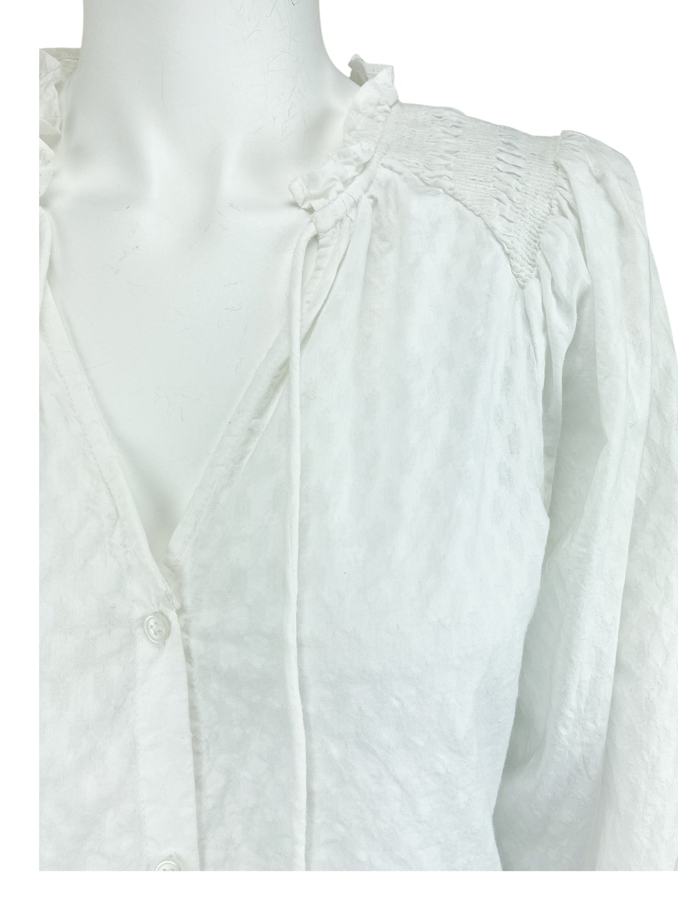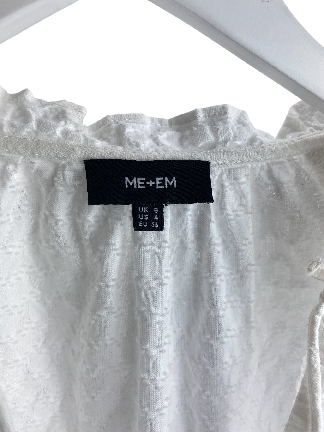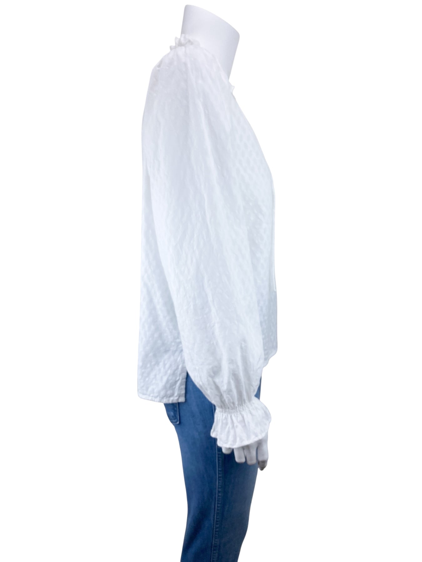 ME+EM Women's Cotton Dobby Ruffle Peasant Blouse White Size 4