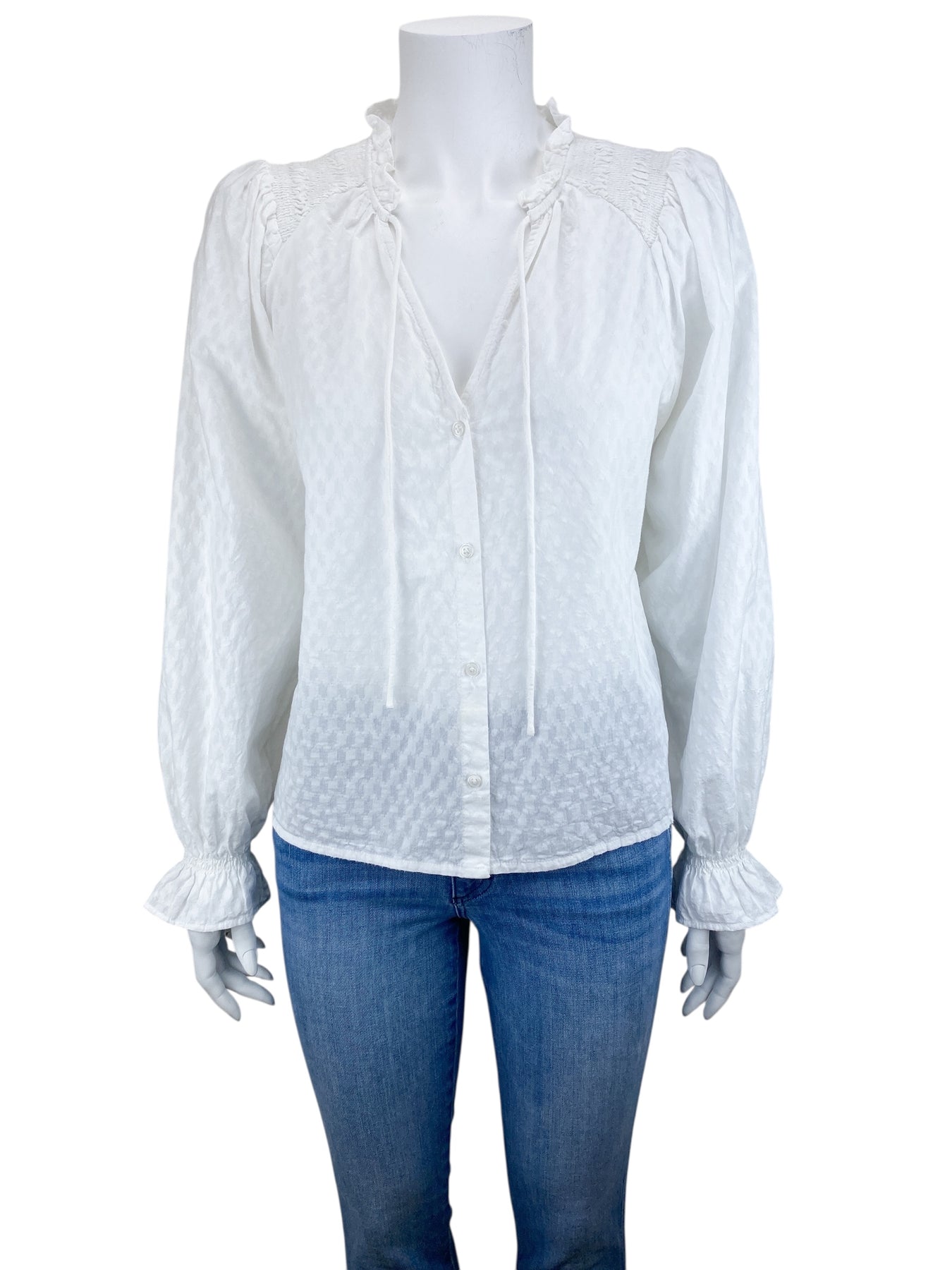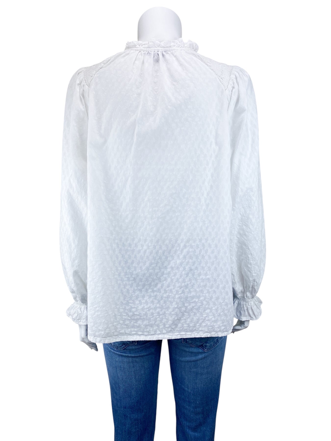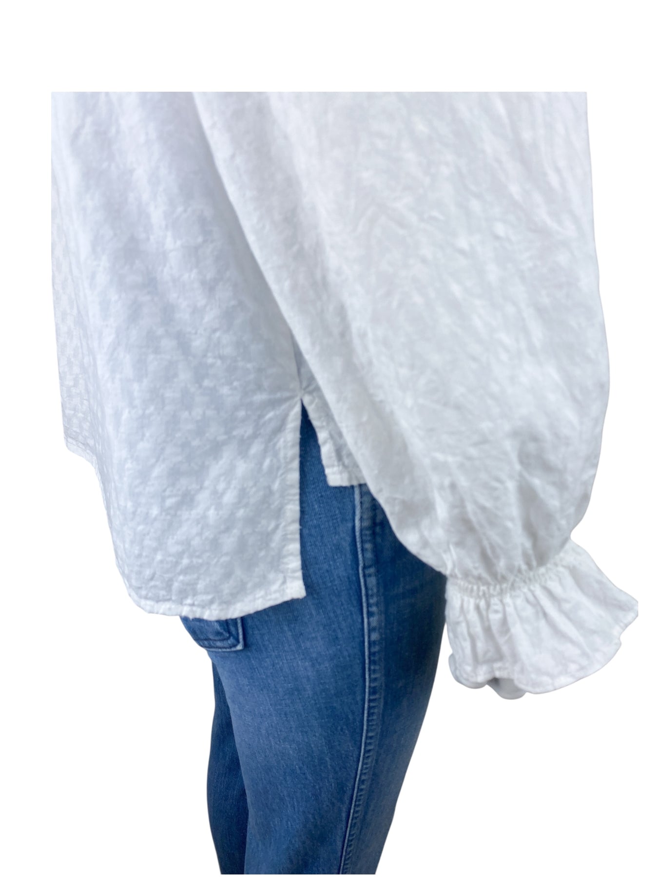 -ME+EM Women's Cotton Dobby Ruffle Peasant Blouse White