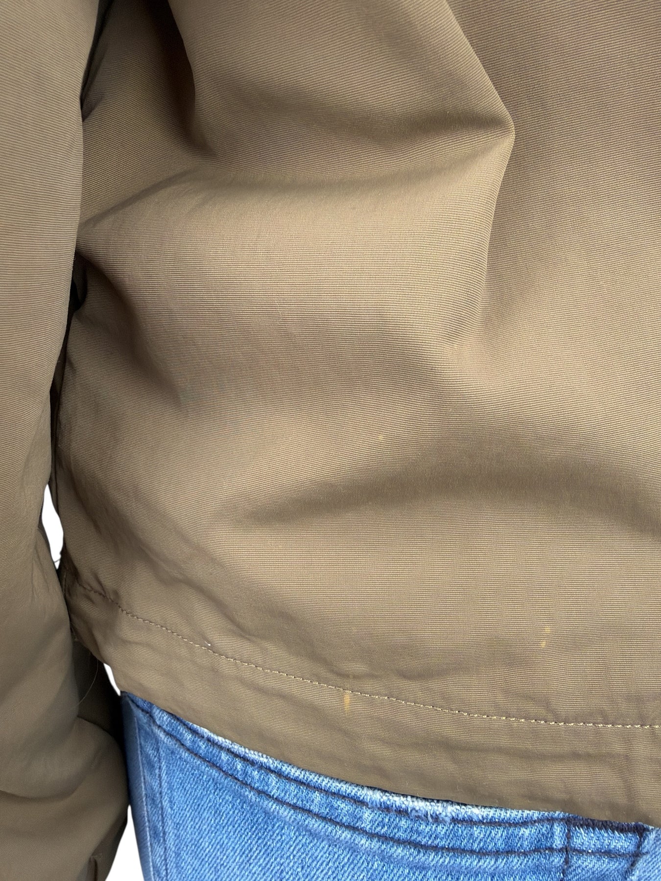 Very Good. No signs of wear except for a tiny spot on the zipper (photo #11 - difficult to see) and a few very small light spots at lower back (photo #12).