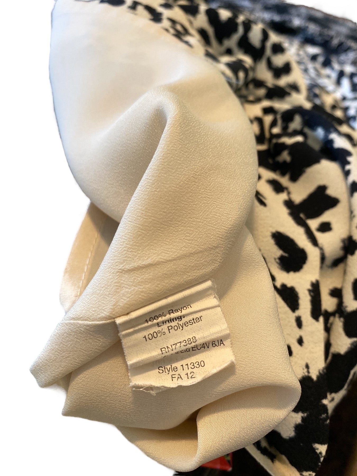 Fabric:  100% Rayon; Lining 100% Acetate