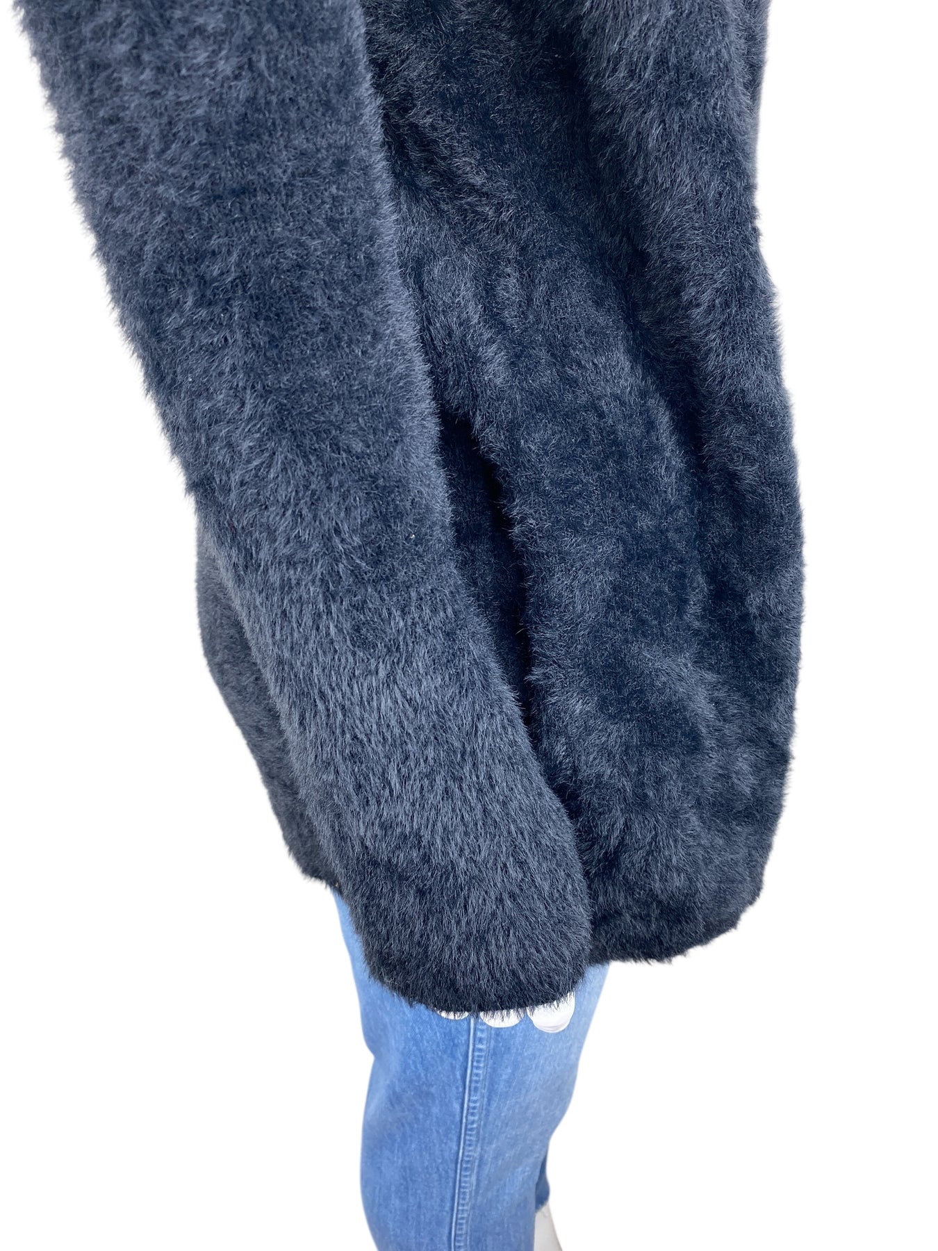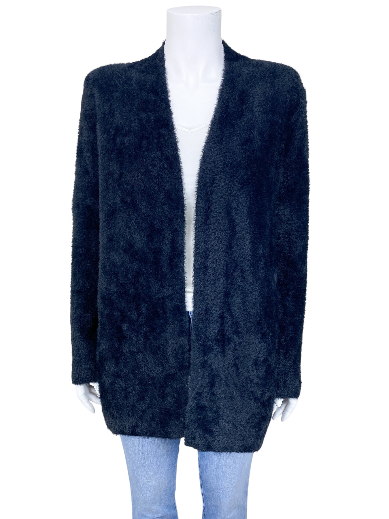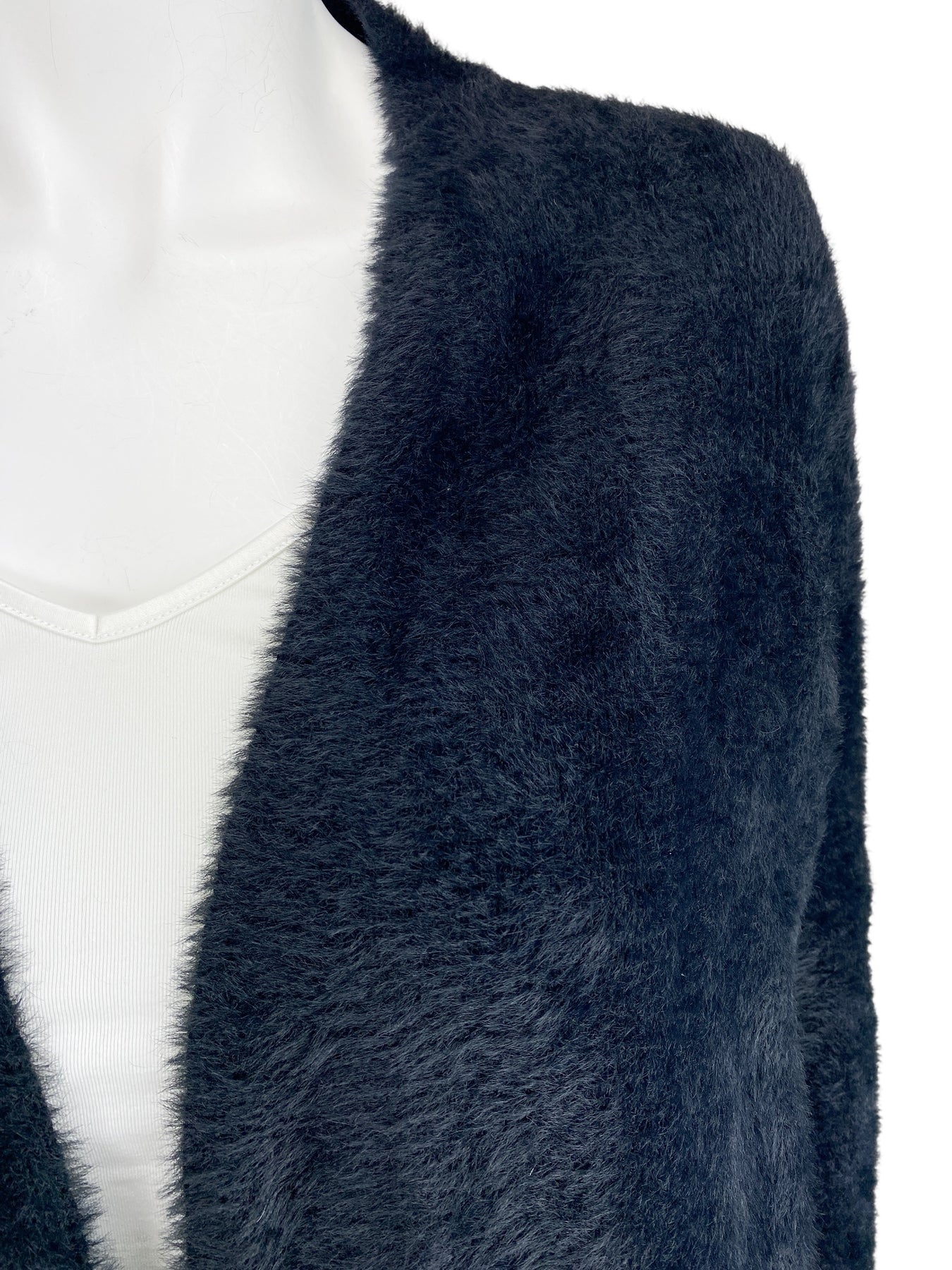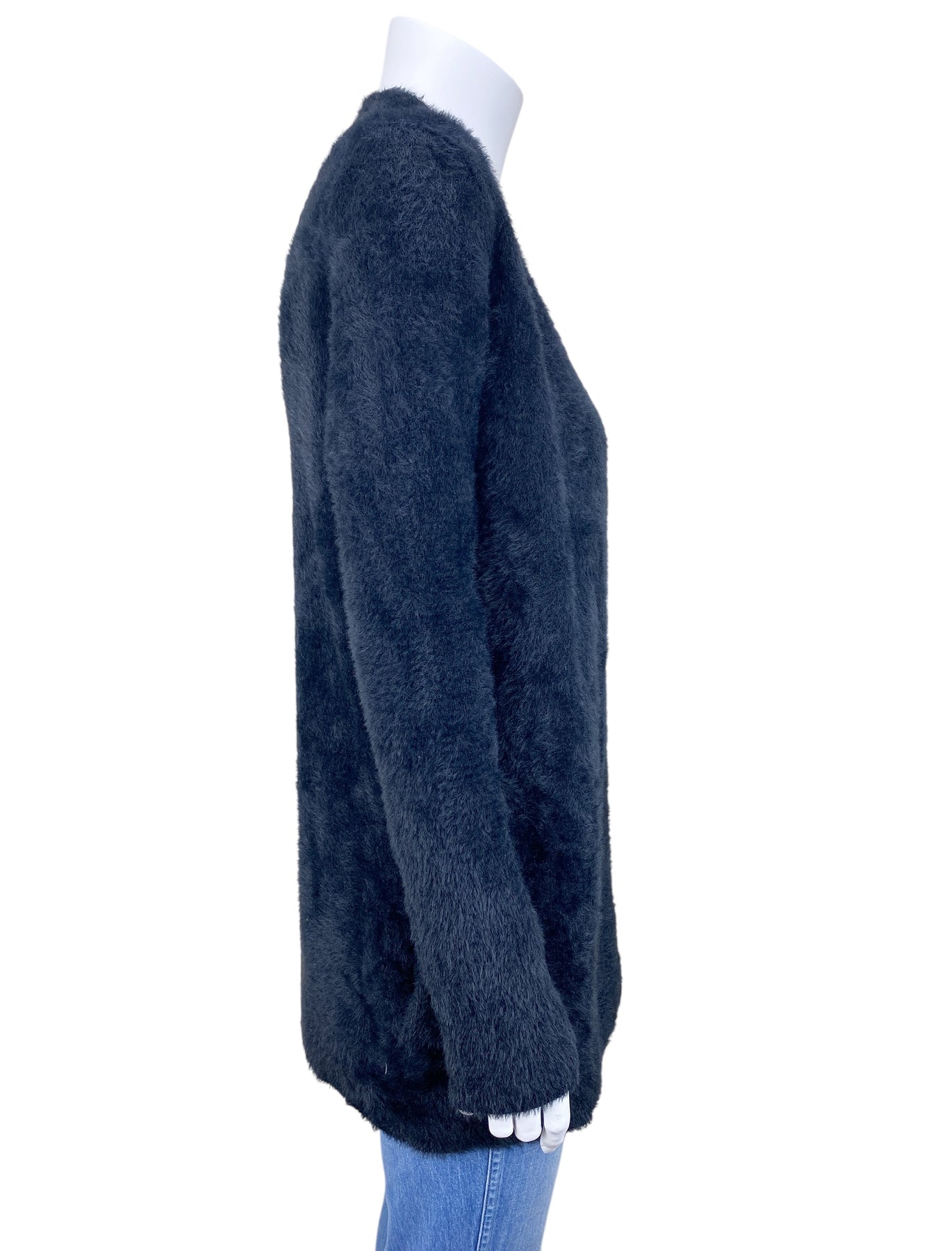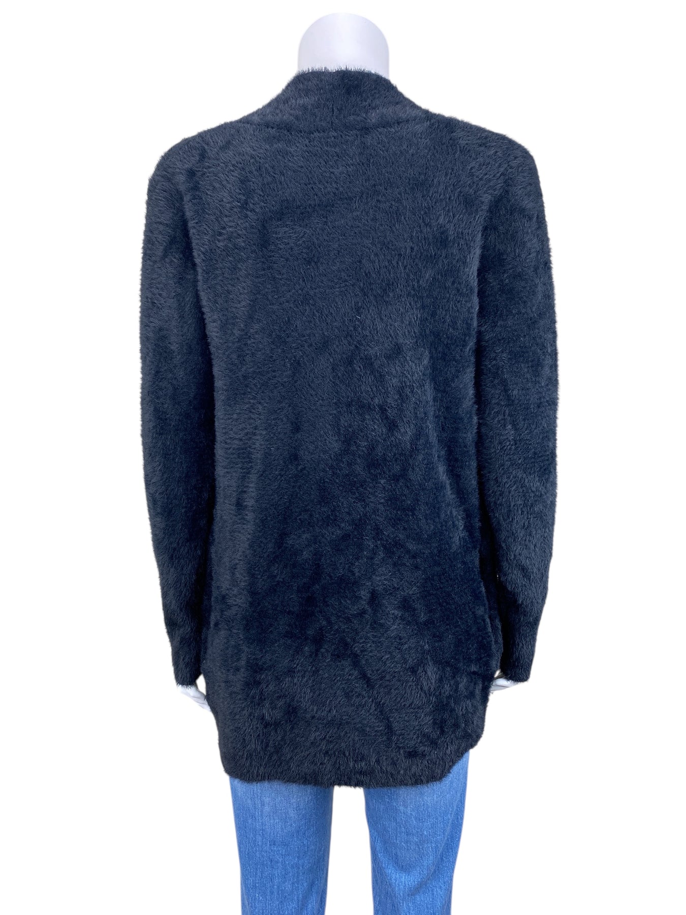-Banana Republic Women's Eyelash Cozy Furry Open Cardigan Sweater Black Size S
