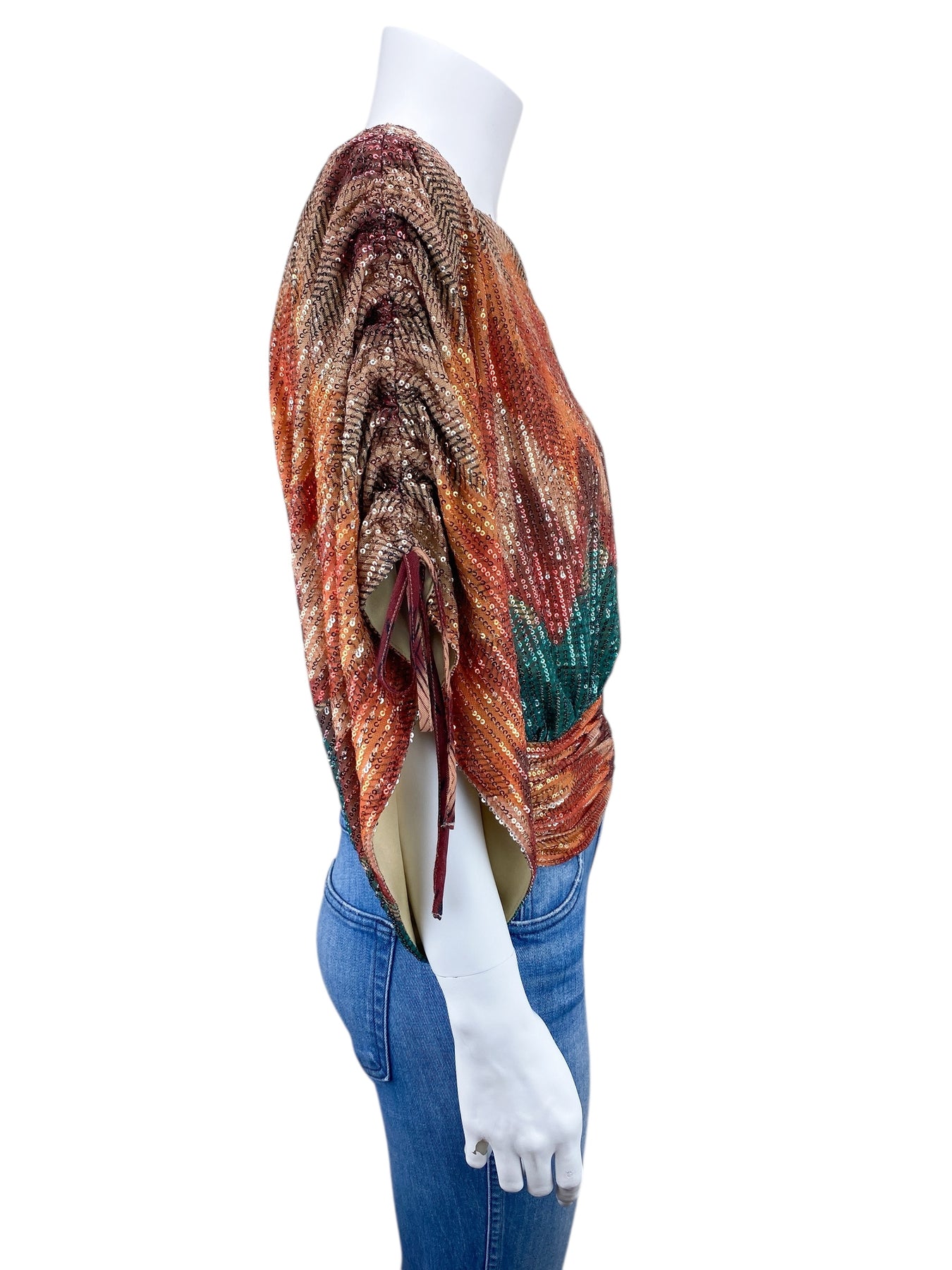 Ramy Brook Women's Zig Zag Sequin Dolman Party Top Burnt Orange Size S